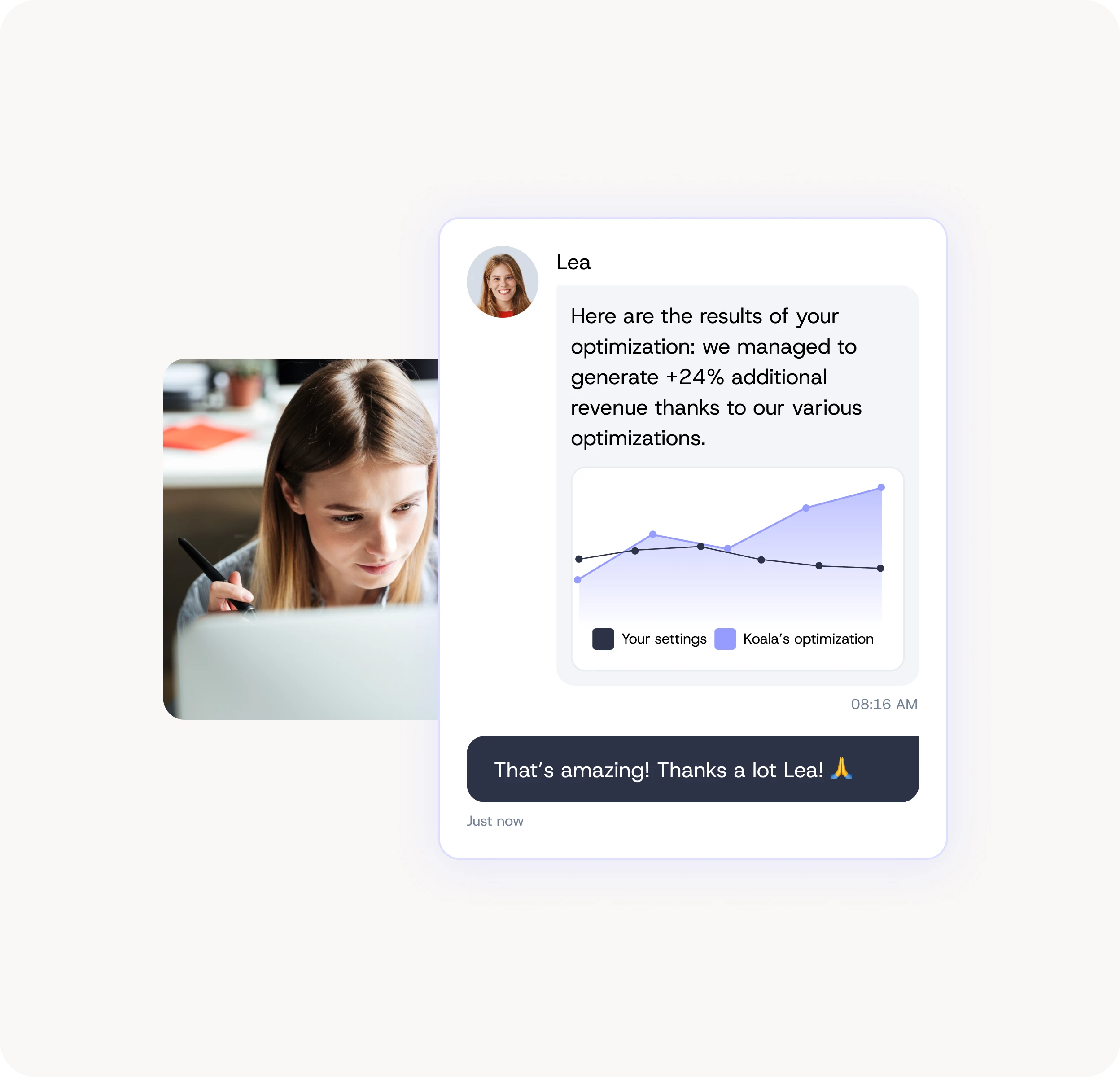 Koala adapts to your technical and operational reality. Our teams guide you through integration via: • API • Automated reports • SmartBlock We handle onboarding end-to-end and work closely with your teams to ensure a smooth and fast launch in weeks, not months.