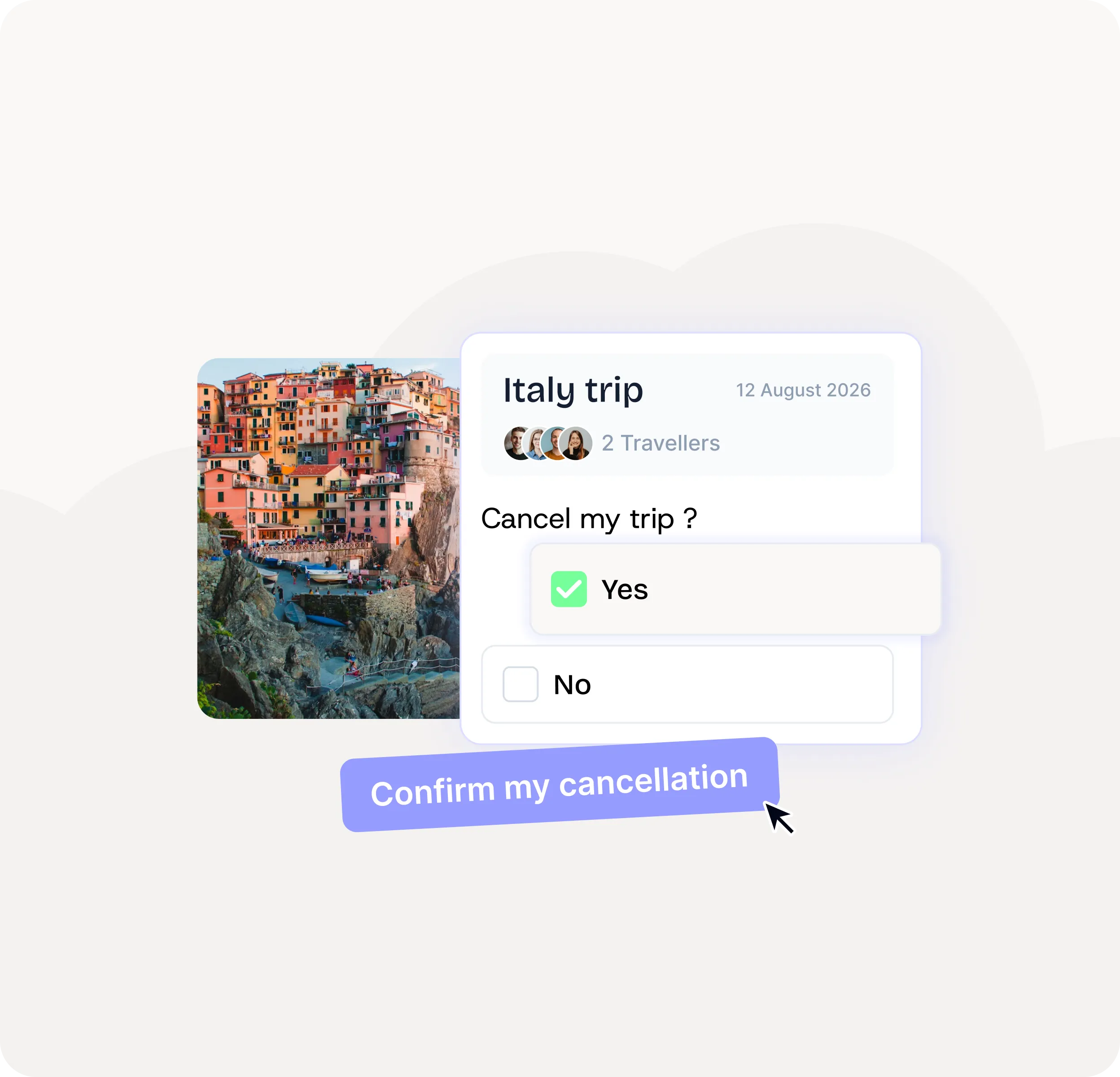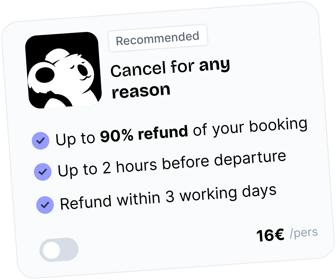 Koala enables travellers to cancel their booking instantly, for any reason. Claims are triggered automatically without customer support intervention.