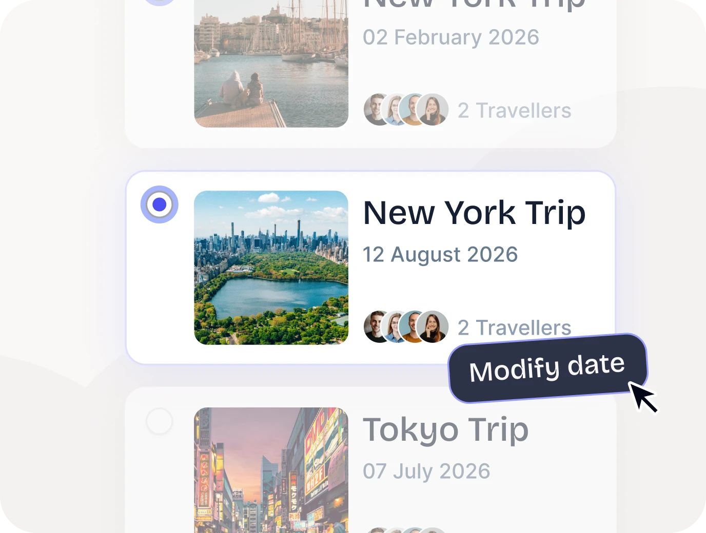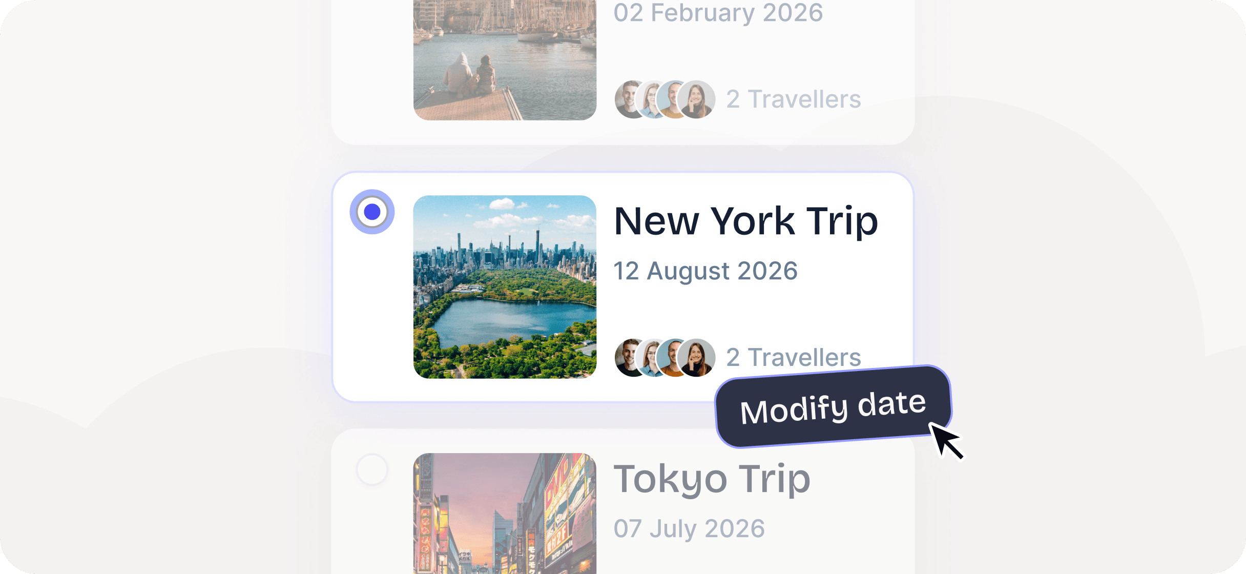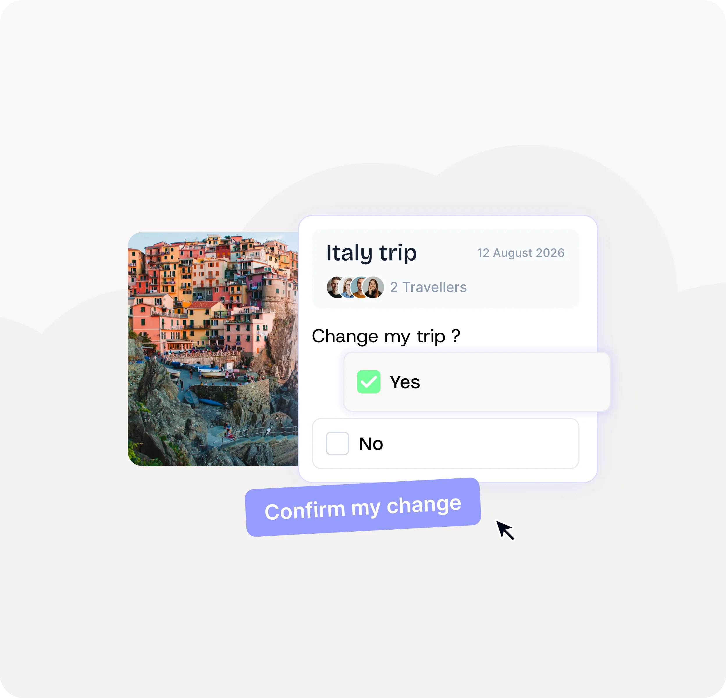 Your customer asks you to modify their trip and shares their new preferences, online, by email, or by phone. No paperwork. No proof. Just pure flexibility.