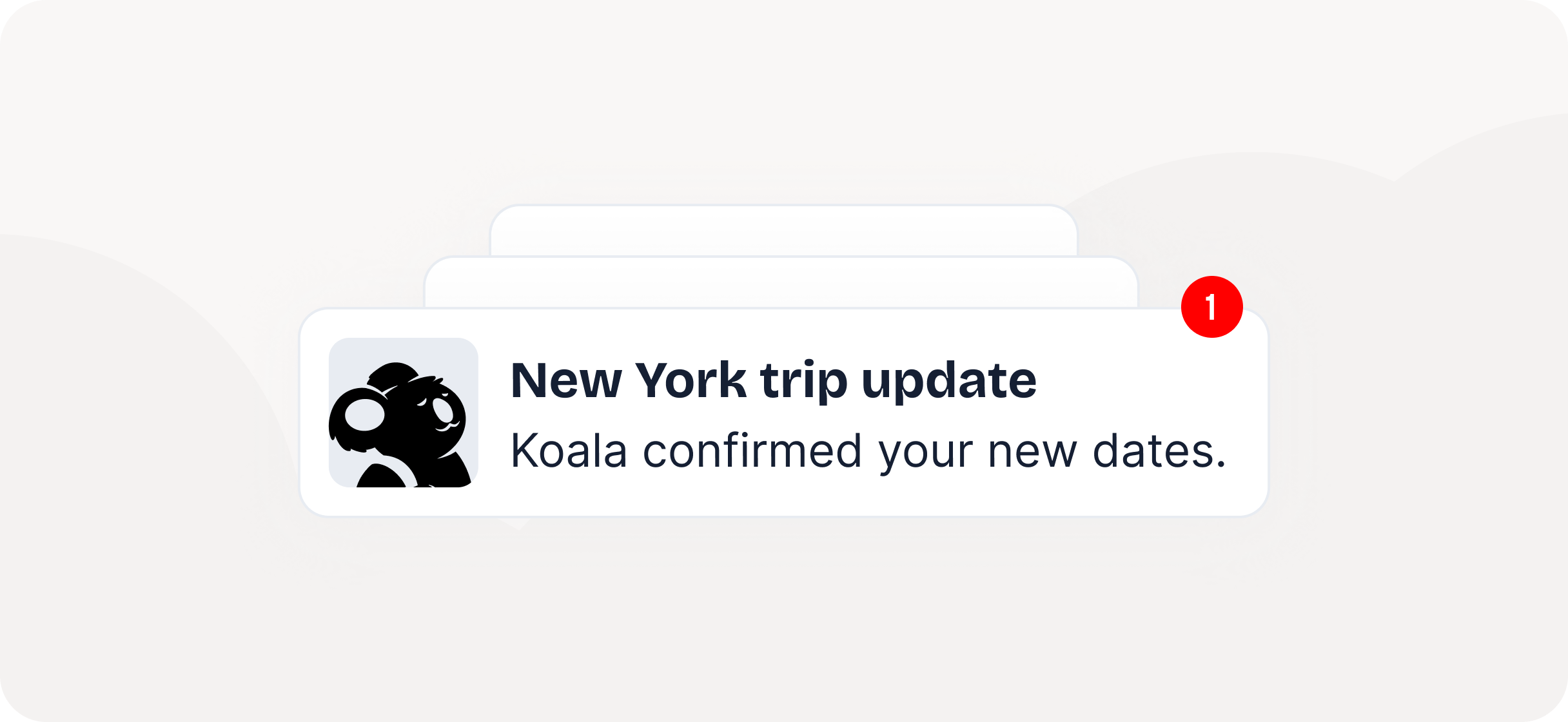 Koala enables travellers to change their booking instantly, for any reason. Credits are created automatically to allow fast booking modifications.