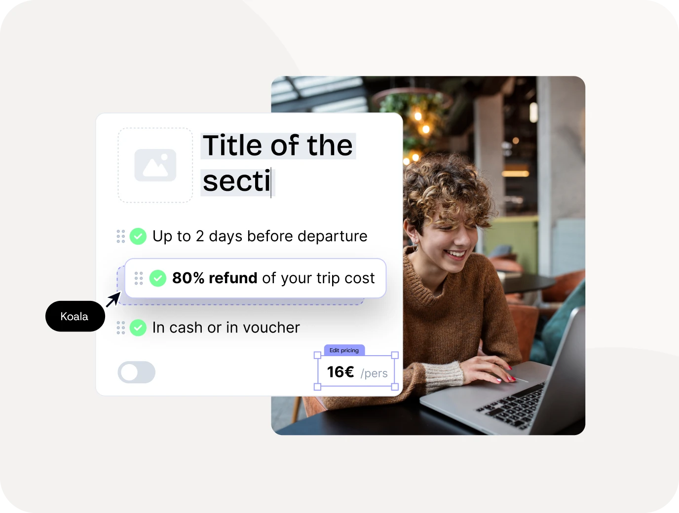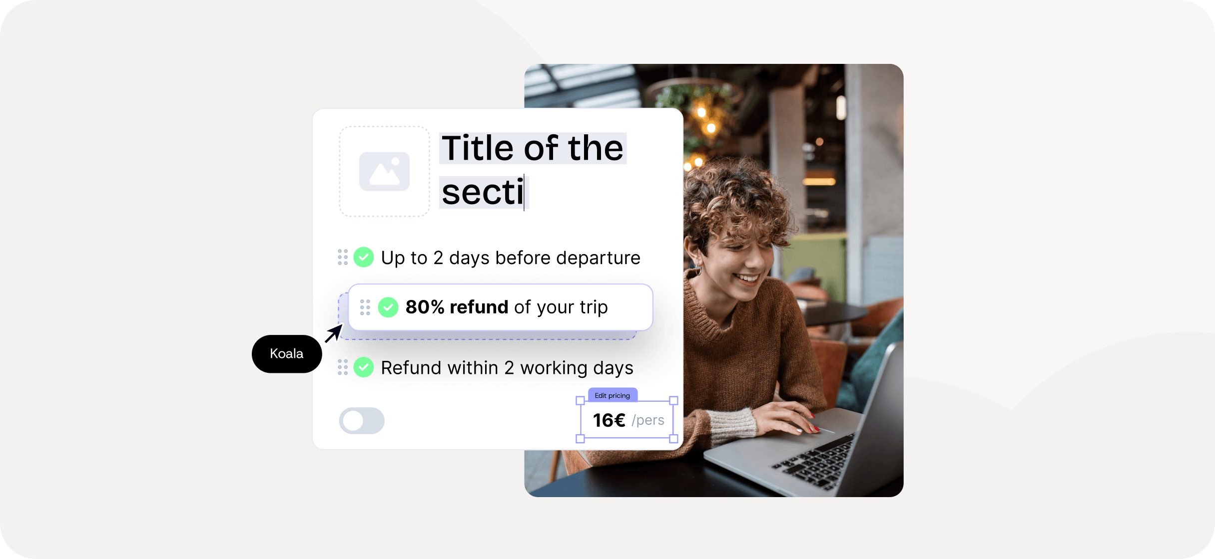 Koala takes care of the full insurance setup, including: • Defining coverage scope and rules • Designing eligibility criteria • Building pricing logic • Structuring claims and assistance flows • Identifying and contracting the right underwriter(s) • Managing regulatory and compliance requirements We work directly with trusted insurance partners across Europe, so you don’t have to. One point of contact. One product. Fully compliant.