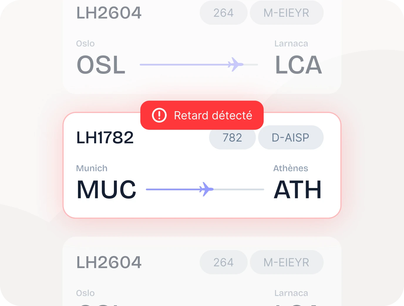 Koala suit les vols en temps réel. Lorsqu'une perturbation est détectée, les demandes d'indemnisations sont créées automatiquement - avant même que les voyageurs nous contactent.