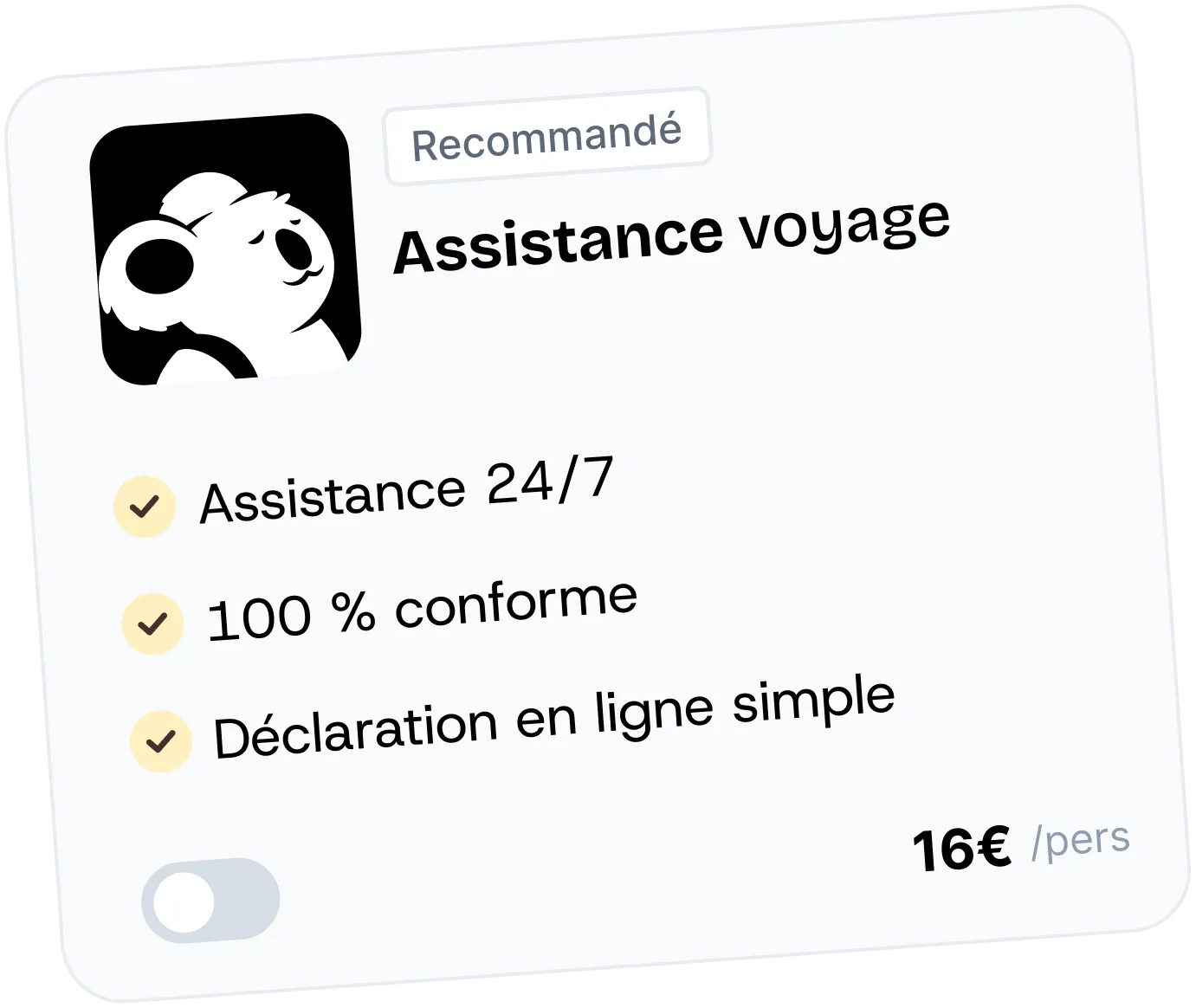 L'Assistance Voyage inclut toute la stack d'optimisation de Koala, conçue pour maximiser la conversion et les revenus d'annulation.